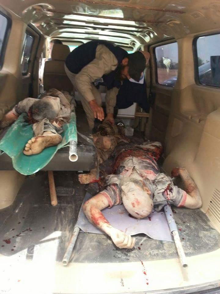 كما وثق المكتب الحقوقي مجزرتين : أحداهما بقصف طيران النظام على الزعفرانة بريف حمص الشمالي راح ضحيتها 18 شهيد , والأخرى في قصف طيران التحالف الدولي على قرية دالي حسن بريف حلب راح ضحيتها 8 مدنيين .