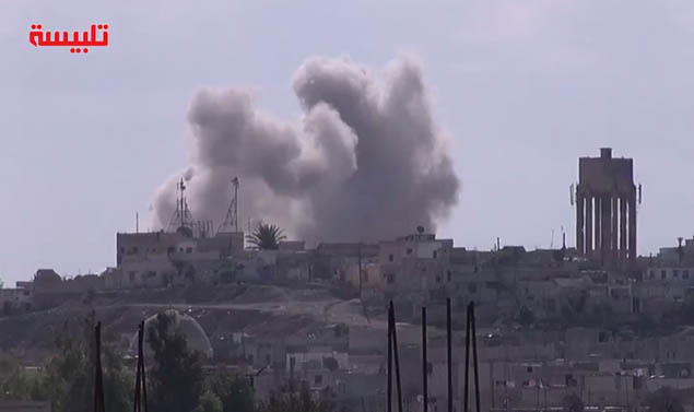 وأفاد ناشطون أن القصف استهدف أحياء عدة في المدينة ، تزامن ذلك مع اندلاع اشتباكات عنيفة بين الثوار وقوات النظام بالقرب من المعسكر .