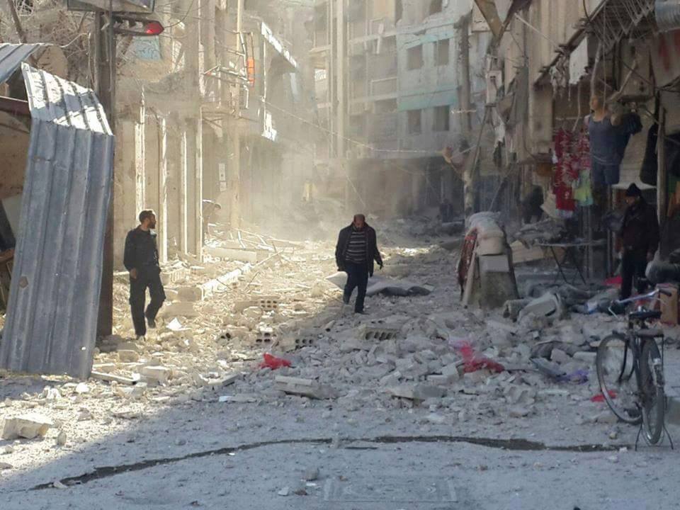 قصف الطيران الروسي مدينة دوما بعدة صواريخ موجهة الشارع الرئيسي في مدينة " دوما" أو كما يطلق عليه ناشطو المدينة " شارع الموت المنكوب " ، وذلك لكثرة استهدافه من قبل الطيران الأسدي والروسي المساند لبشار الأسد في حملته ضد المدنيين العزل ، بالتزامن مع قصف مدفعي على المدينة.