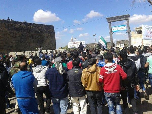 إذ خرج أهالي حوران في "بصرى الشام ومدينة طفس" بريف درعا، بمظاهرات دعت لتوحيد الصفوف وتضافرها، وإسقاط نظام الأسد.