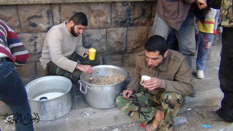 خرج المجاهدون لاستلام وجبة البرغل للغداء ، فإذا بمجموعة من النساء تتجمعن حول السيارة تحمل كل واحدة منهن صحناً علها تأخذ وجبة تطعم أطفالها ..