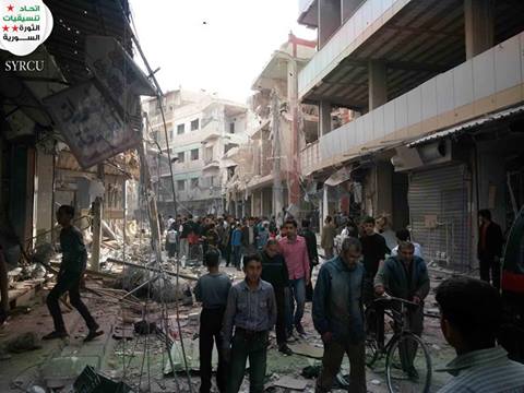 أغار الطيران الحربي التابع لميليشات الأسد على وسط مدينة دوما في ريف دمشق الشرقي اليوم حيث أدت الغارتين إلى مقتل أكثر من ستة عشر مدني و ثمانين جريح بينهم حالات خطرة حيث أن الغارتين استهدفت وسط المدينة المكتظ بالمدنيين .