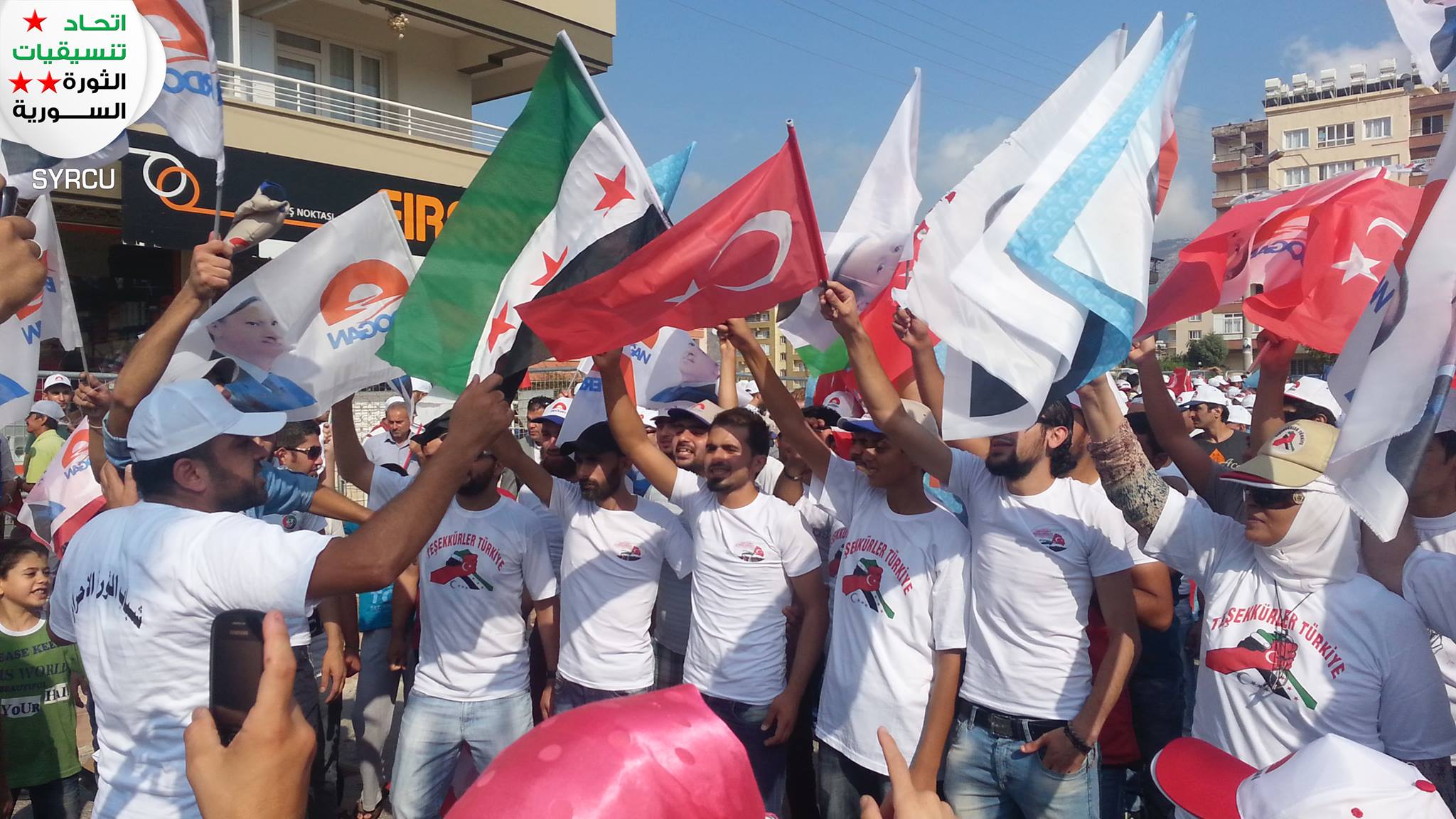 حيث قاموا اليوم بتنفيذ تظاهرة شكر للشعب التركي في اثناء خطاب رئيس الوزراء التركي رجب الطيب أردوغان في مدينة أنطاكيا , وتفاعل المواطنون الاتراك المتواجدين في المنطقة معهم , حيث امتزجت الهتافات باللغتين العربية والتركية مؤكدة على الأخوة بين الشعب السوري والتركي وجابت التظاهرة شوارع مدينة انطاكية رافعين العلمين السوري والتركي.