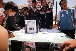 أهالي سوريا الذين شردتهم براميل المجرم بشار الأسد في شمال سوريا يقترعون في مركز انتخابي ...
